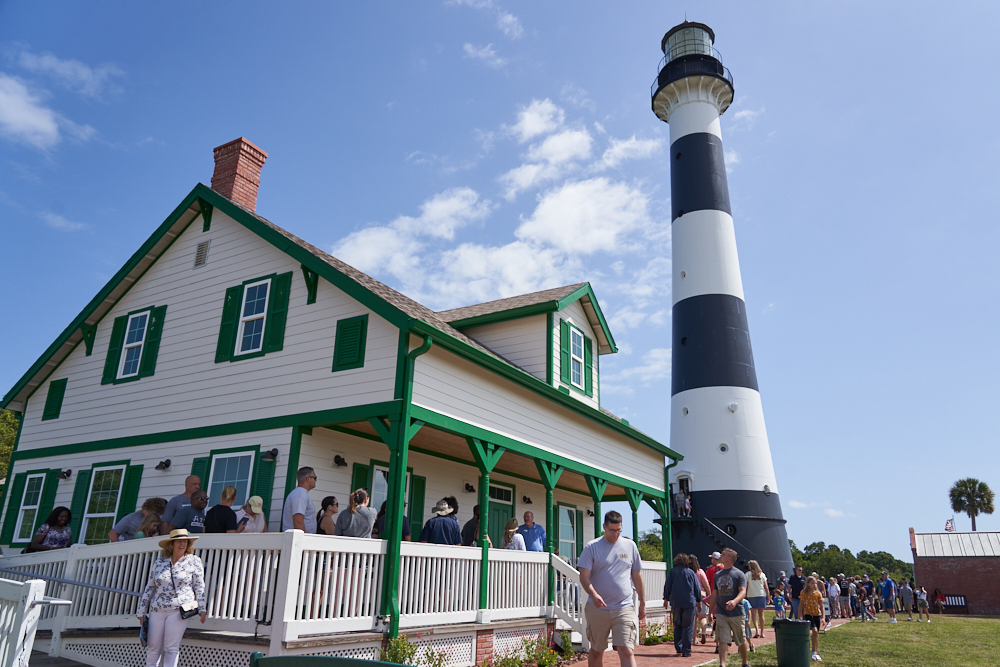 The Cape Canaveral Lighthouse has stood on the Cape since 1868. Situated amidst America’s Premier Gateway to Space, the lighthouse is owned by the United States Space Force and maintained as an active aid to navigation by the United States Coast Guard. Visits to the lighthouse, museum, and gift shop are available via prescheduled tours, only.